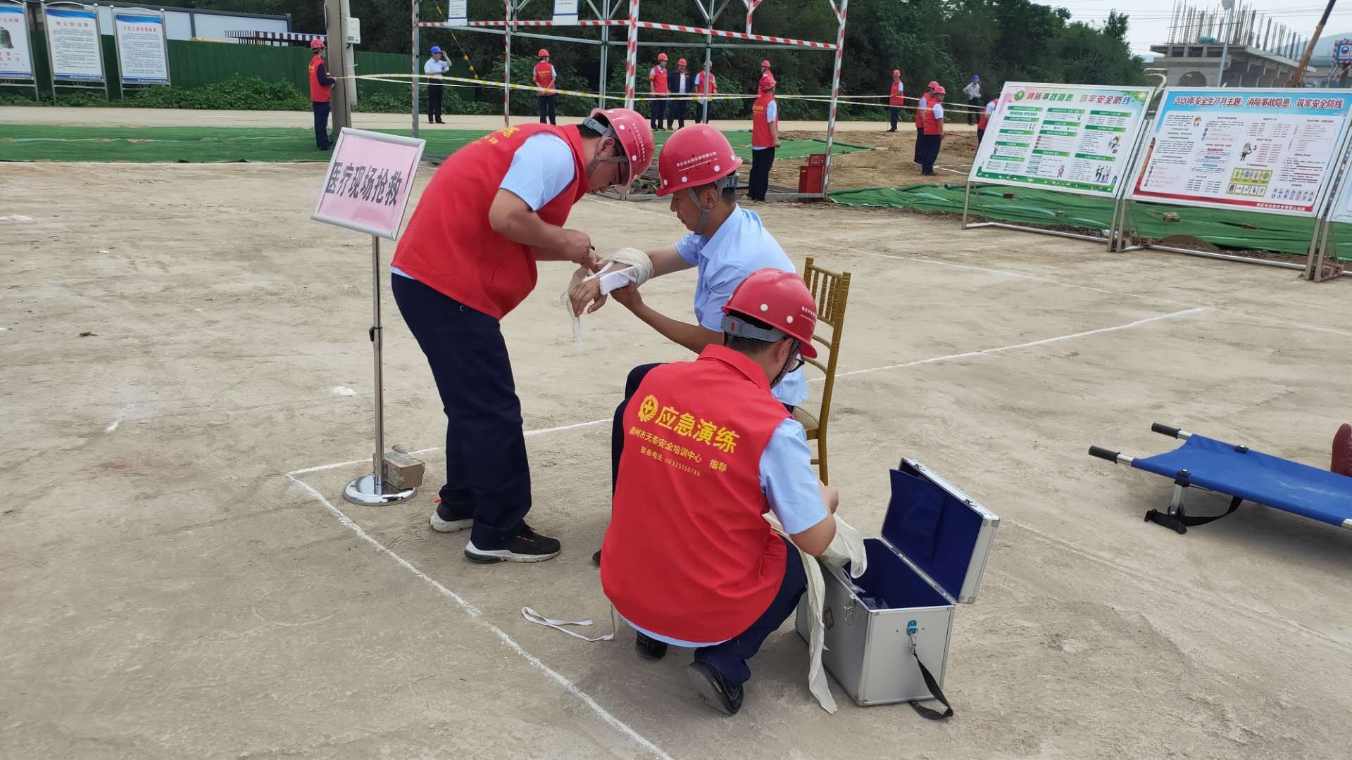 為貫徹國(guó)家第19個(gè)“安全生產(chǎn)月”指導(dǎo)精神,落實(shí)市安委會(huì),市、區(qū)兩級(jí)城鄉(xiāng)水務(wù)局對(duì)安全生產(chǎn)的整體要求,提升公司綜合指揮、快速反應(yīng)、應(yīng)急處理和協(xié)調(diào)作戰(zhàn)的能力,切實(shí)提高應(yīng)急救援水平,保障人民生命和公司財(cái)產(chǎn)安全。6月20日下午,棗莊市水利開發(fā)有限公司在市中區(qū)東王莊閘除險(xiǎn)加固工程項(xiàng)目施工現(xiàn)場(chǎng)舉辦了“2020年生產(chǎn)安全事故綜合應(yīng)急演練”活動(dòng)。